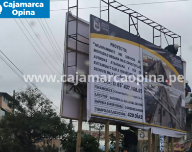 COLOCAN CARTEL DE OBRA PARA EL INICIO DEL BYPASS EN CAJAMARCA