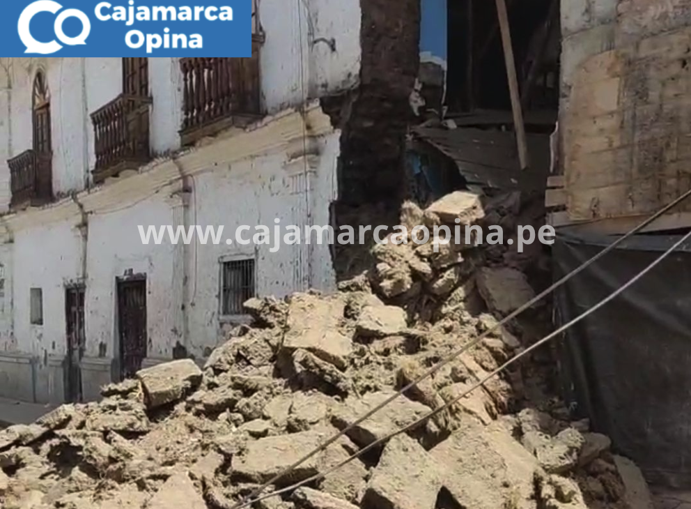 COLAPSO EN EL CENTRO DE CAJAMARCA: PARTE DE LA CASONA VILLANUEVA SE DERRUMBA Y GENERA ALARMA