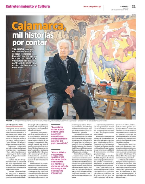 Todo eso hace que me pregunte si Andrés Zevallos de la Puente existe en verdad o si es una fantástica creación de Cajamarca y creo que, en los tiempos futuros, la gente se preguntará quién inventó a quien, si Andrés al tío Lino o el tío Lino a Andrés.