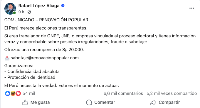 Guerra de López Aliaga y acuerdo